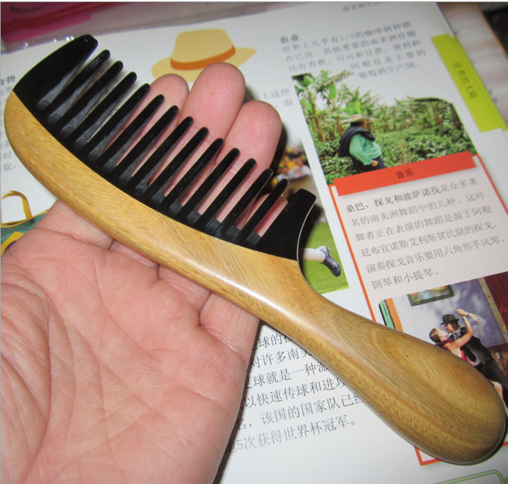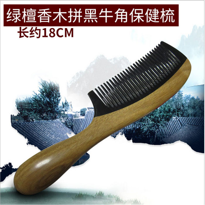Round head handle comb Long about 18cm fingerprint round handle comb Long about 18cm small teething shank comb Long about 18cm green sandalwood Spelled Black Horn Fine Tooth Comb Green Sandalwood Parquet Black Horn Coarse