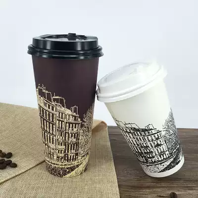 Disposable milk tea cup coffee hot drink extra thick paper cup sketch literature delivery package soymilk Cup 1000 with lid
