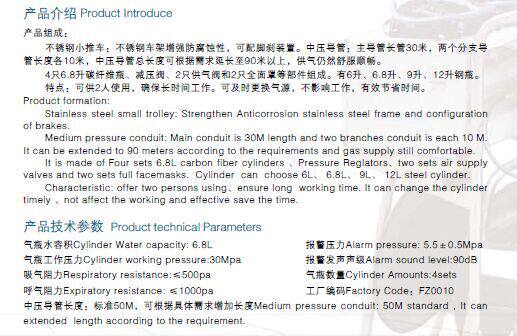 Four bottles of vertical 6 8L carbon fiber mobile cart-type long-tube air respirator fire rescue mobile air supply source