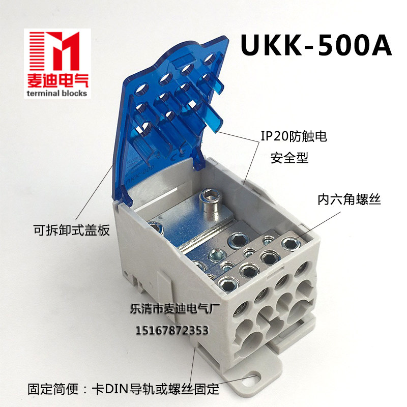 UKK500A rail type one-in-multiple-out terminal block branch box universal wire connector surface-mounted wiring