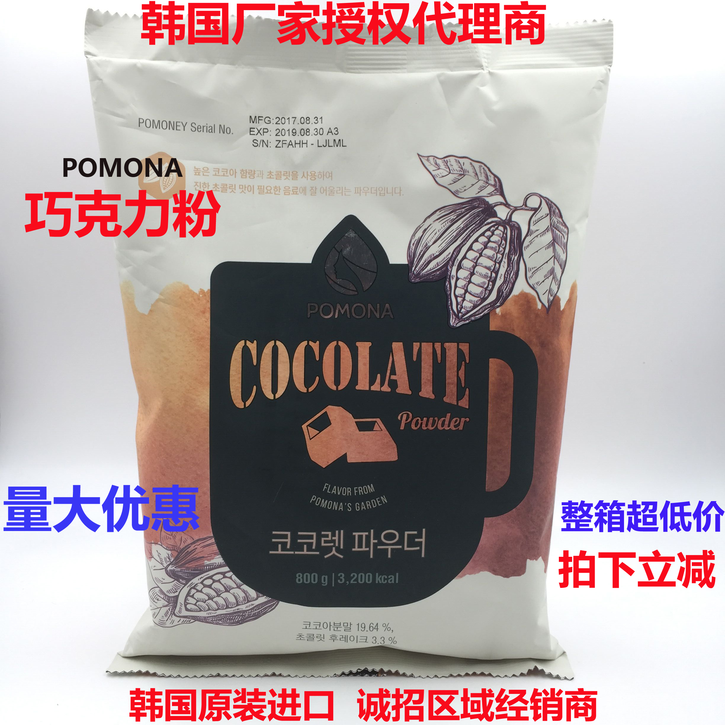 South Korea Pomona Pomona Pomona Chocolate Powder Coffee Accompanied you Snow Ice Hot Drink Raw Cocoa Powder