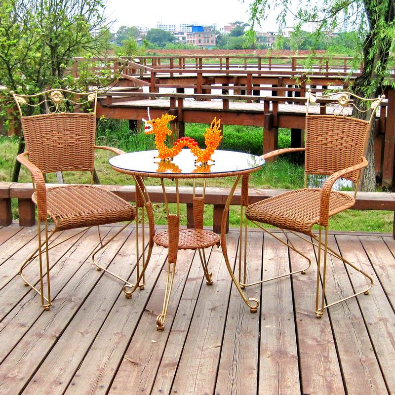 Villa garden tea table wrought iron rattan tea table hand-woven tempered glass small round table direct sale balcony courtyard