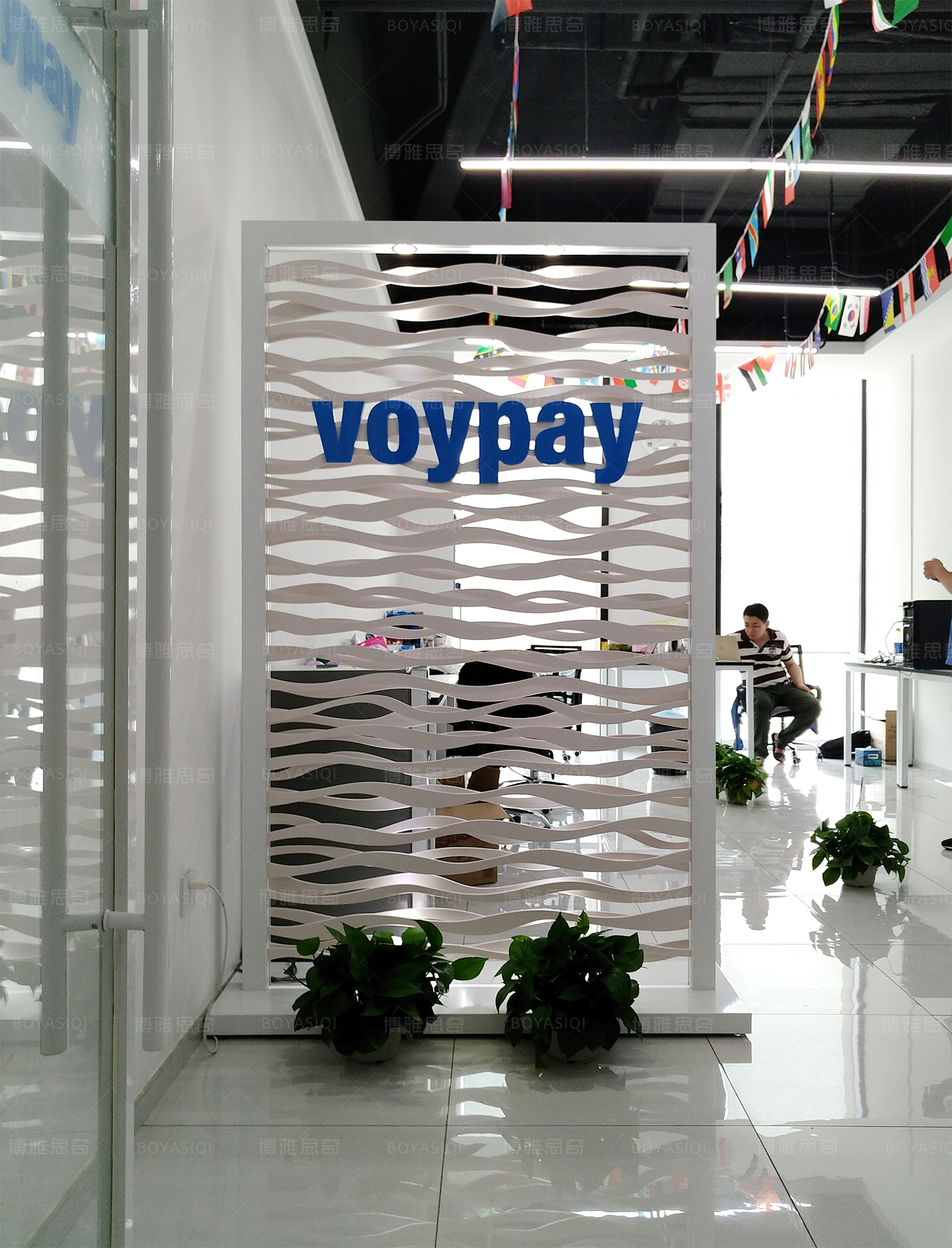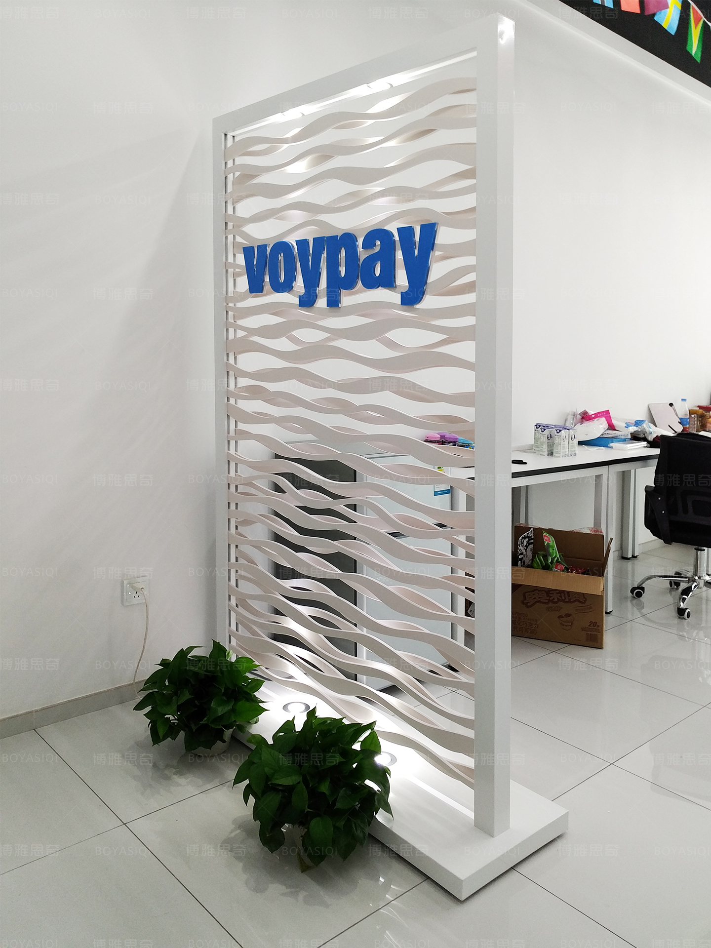 Hollow LOGO background wall transparent white grille Logo Wall fashion modern style Company shop Creative Screen