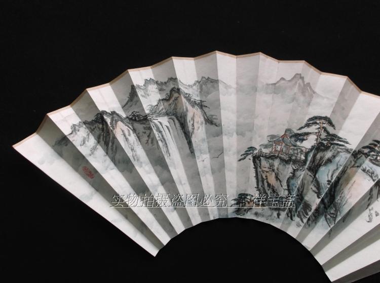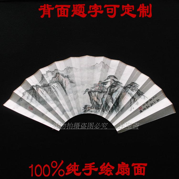 Personality Custom hand-painted fan surface 10 inch 13 square Su Work ultra-thin fan surface Handpainted landscape painting Nanshan Flying Waterfall Cloud