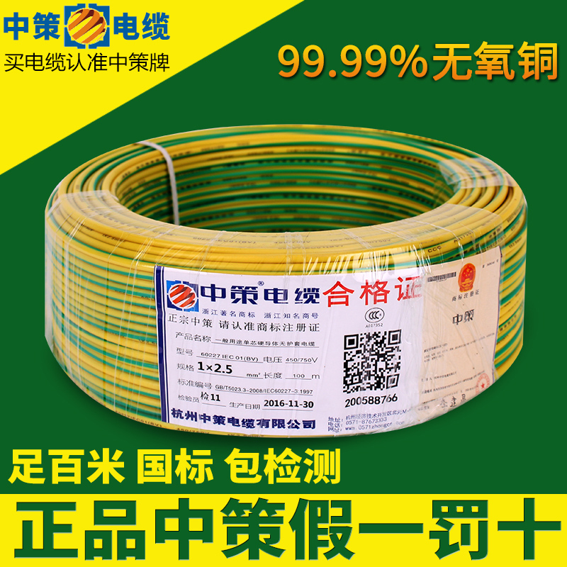 Hangzhou Zhongce brand wire and cable BVR4 square national standard copper core wire single core multi-strand 100 meters soft wire