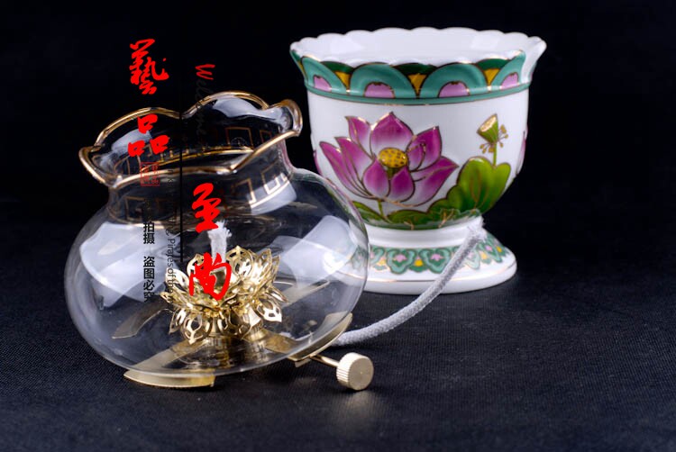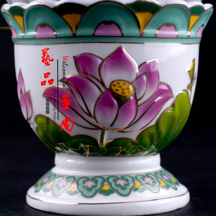 Buddha products Color Lotus relief ceramic ghee lamp anti - wind lotus oil lamp for Buddha lamp