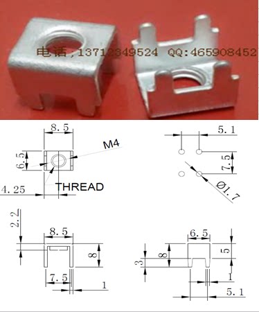 Welding terminal M4PCB terminal block hardware stamping parts Four-foot terminal length 8*6 PCB-1C connecting column