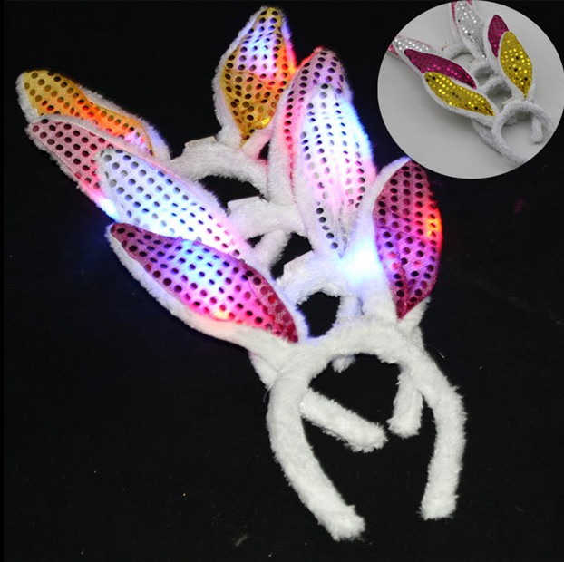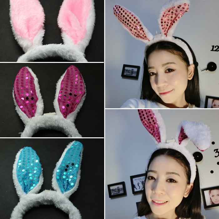 Luminous flashy plush sequin rabbit ear hair clip Hair Clip Children Flashy Toy Swing Stall Stock Source Square Hot Sell