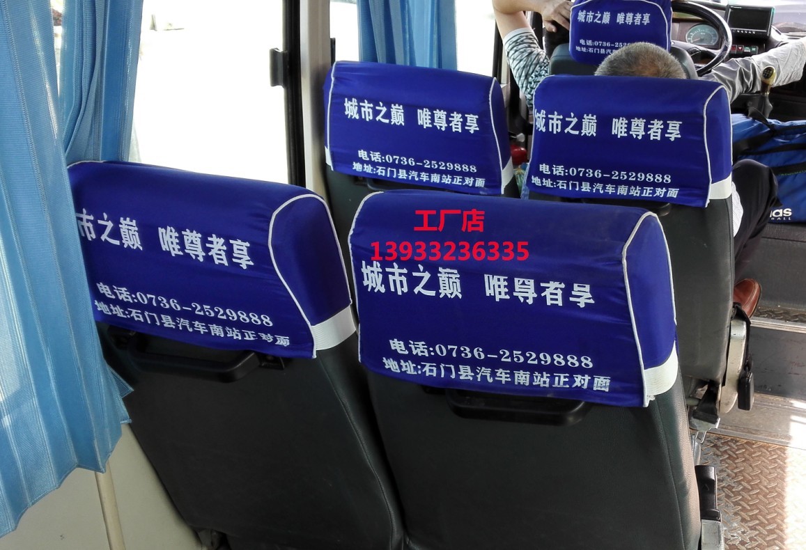 Coach Advertising Seat Cover Custom Head Pillowcase Printed Bus Seat Cover White Hat Head Row Logo Bus Pillow Cap