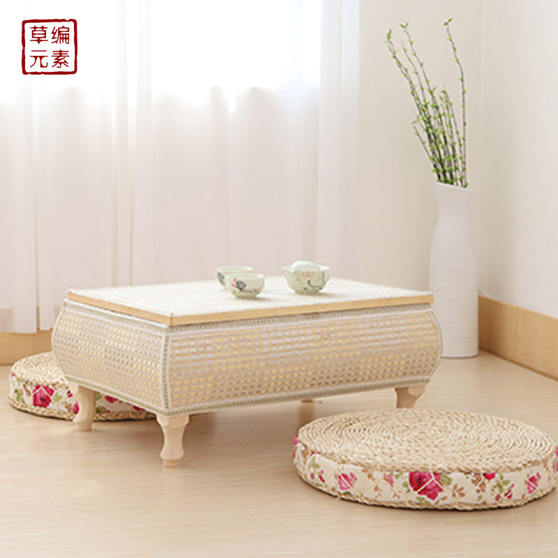 Rattan straw tatami coffee table bay window table solid wood simple window sill small table solid wood kang table Japanese-style floor low table