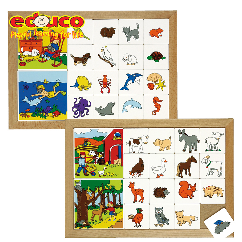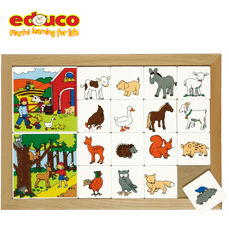 Dutch Educo Young Teach Kindergarten Early Education Card Classification Game Animal Series-Wild and Farm Animals