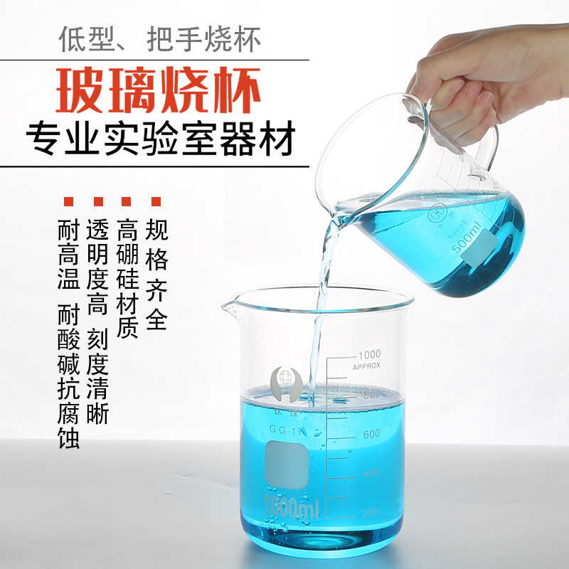 High and low shape glass shaker measuring cup with scale high temperature resistant heating laboratory size capacity glass shaker with shank 50150500 1000 2000ml ml