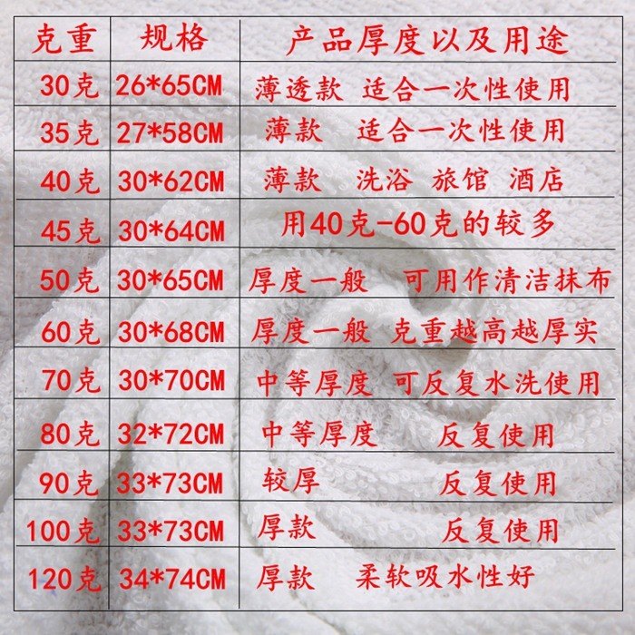 Towel 30g ultra-thin 26*65cm 50 pieces of towels 35g thin 27*60cm 50 pieces of towels 40g thin cotton 30*62cm 50 pieces of towels