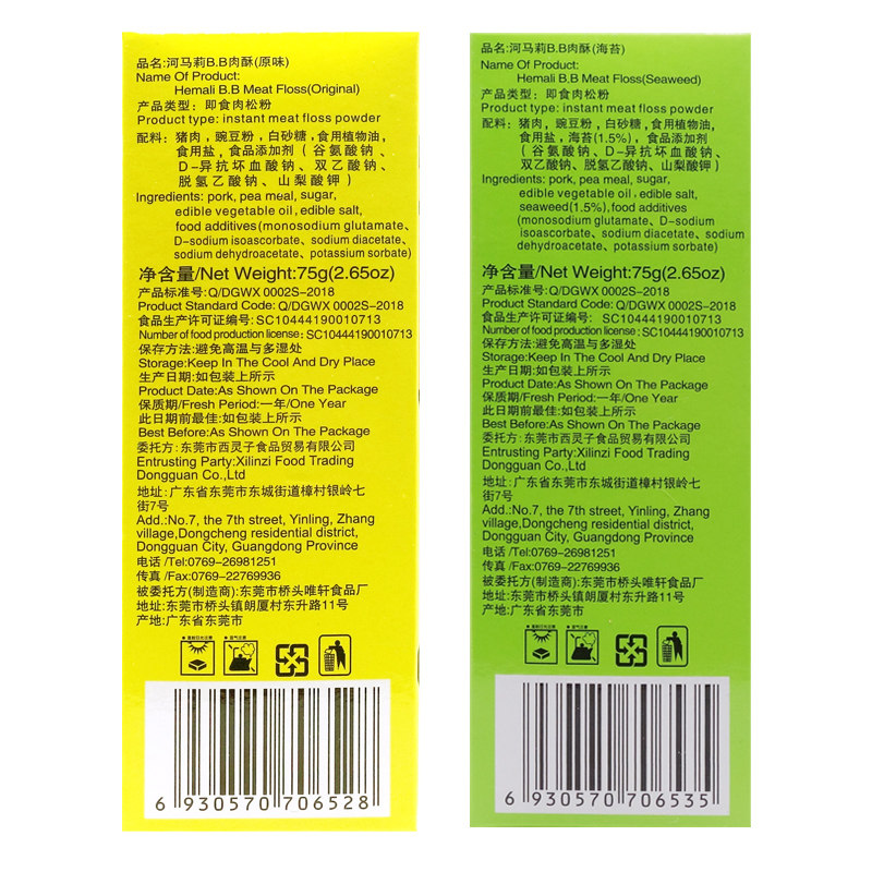 Hippo Li BB meat crisp original seaweed flavor pork pine Children's baby food meal replacement combination 75g*2 boxes
