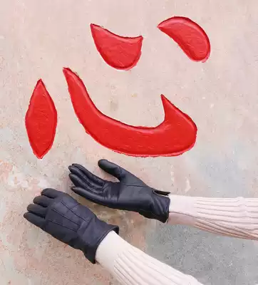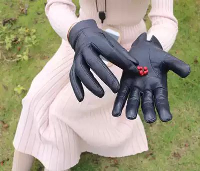 Mingshun sheepskin gloves, women's warm wool, driving in special goatskin skin thin