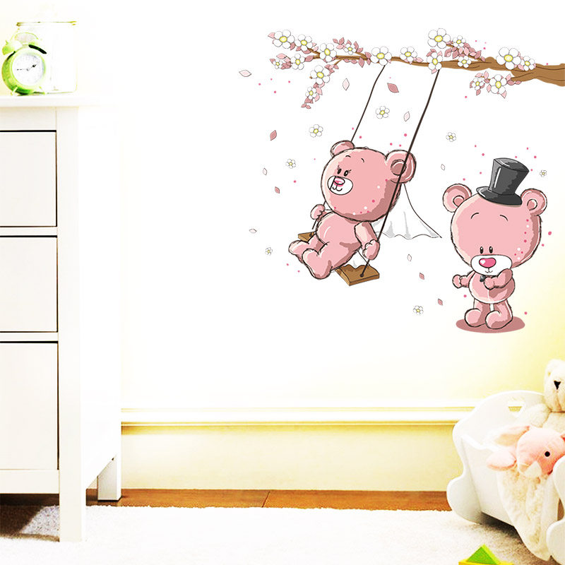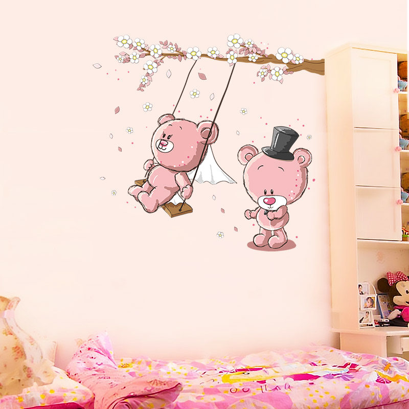 Creative cute children's room wall stickers bedroom bedside wall stickers room decoration wall stickers swing bear