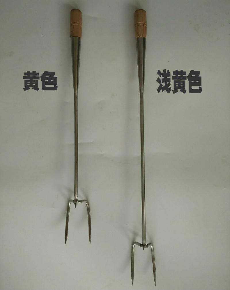 Non-magnetic stainless steel meat fork chicken duck goose soup hook Large double hook long wooden handle fishing meat char siu meat fork kitchenware boiled meat