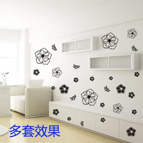 Home Accessories Black & White Small Flower Wall Stickers Wall Deco Wall Paper Bathroom Makeup Room Glass Door Stickler Flat Wall Sticker