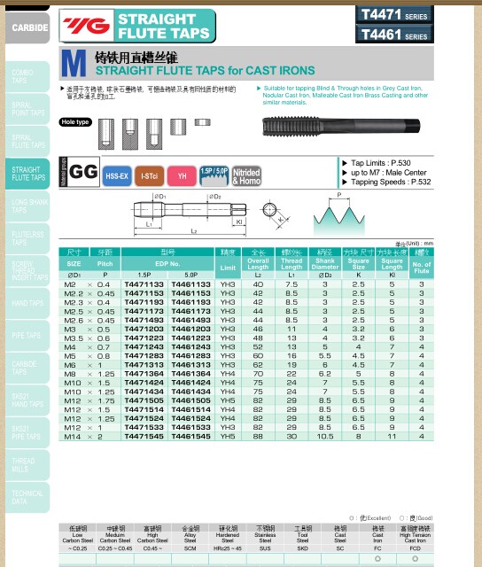 South Korea's YG-1 cast iron straight groove screw tapping machine screw tapping screw tapping T4471 M3-M22