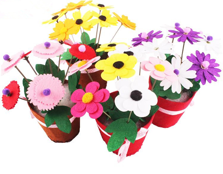 Mother's Day gift free of cut of unwoven cloth art flower potted children handmade carnation of flowers Diy parent-child material bag