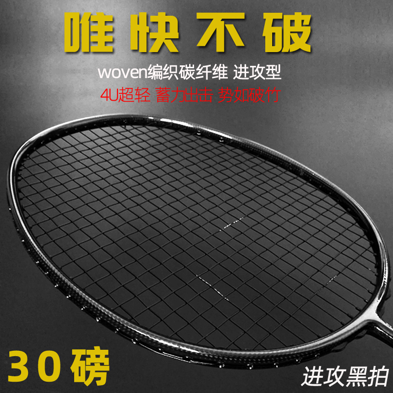 Carbon Fiber Badminton Racket 5U4U Ultra Light Offensive Type Training Pat WOVEN Taiwan Black Beat High Pound Resistant