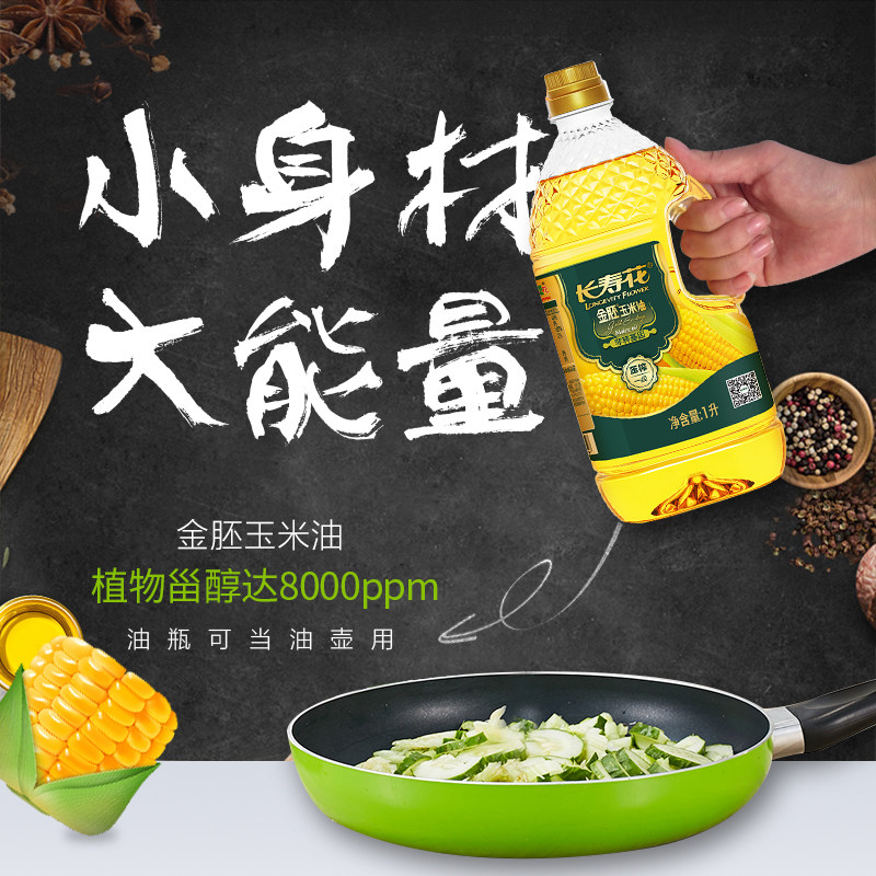Longevity flower gold embryo corn oil 1L non-GMO pressed first-grade plant edible oil baking and cooking household bottled
