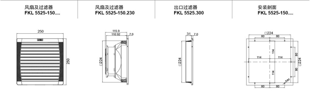 LEIPOLE Rep Electric cabinet fan and filter FKL5525-150 230220 V 250X250-Taobao