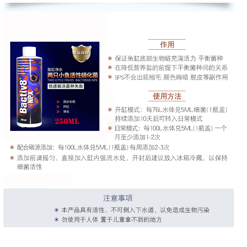 Two small fish in the United States digest bacteria 250ML seawater live bacteria water purification detoxification culture bacteria water quality stabilizer water purification