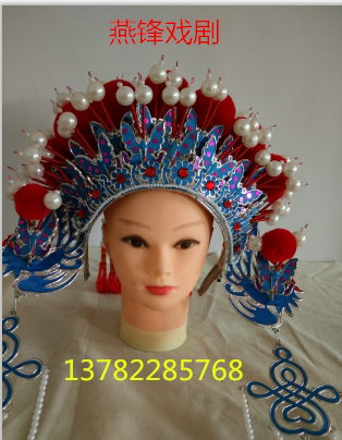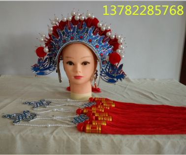 Fengguanxiapei, drama supplies, theater hat, wedding photography props, bridal hat, pompom, emerald green phoenix crown