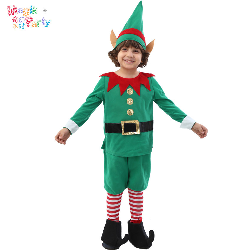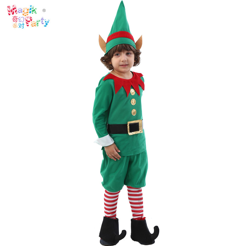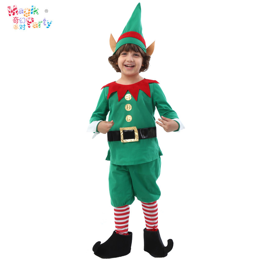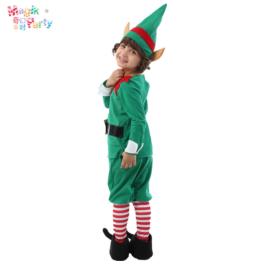 Christmas children perform costumes Cosplay shows clothes boy green little pixie Peter Pan