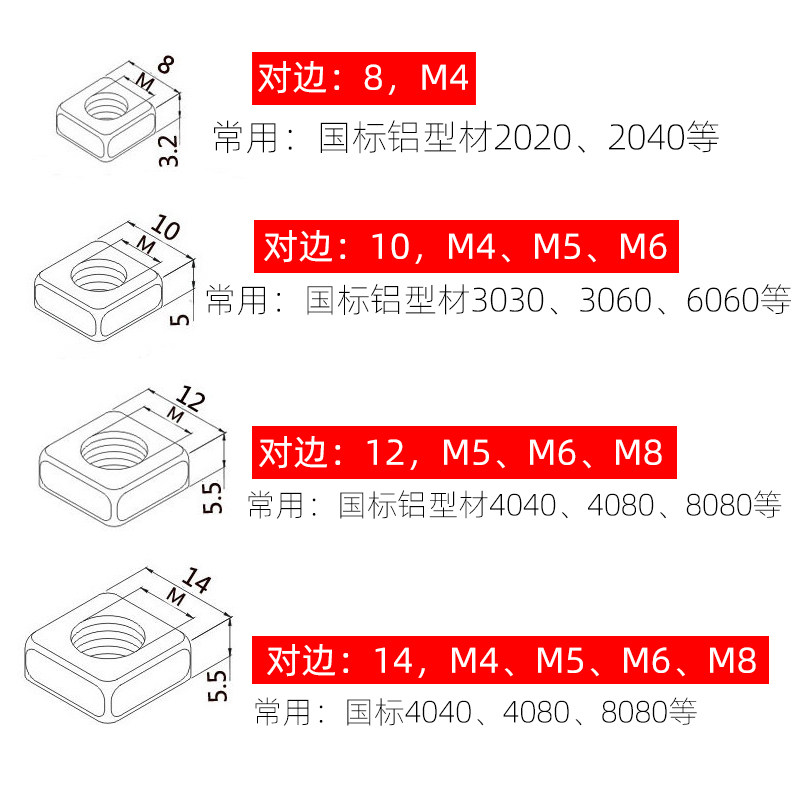 Chuangying industrial aluminum profile accessories square nut national standard profile fastening square pre-installed nut M4 M5 M6M8 - Taobao