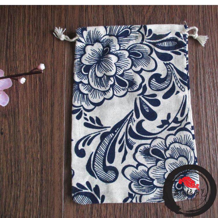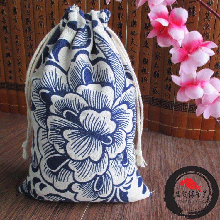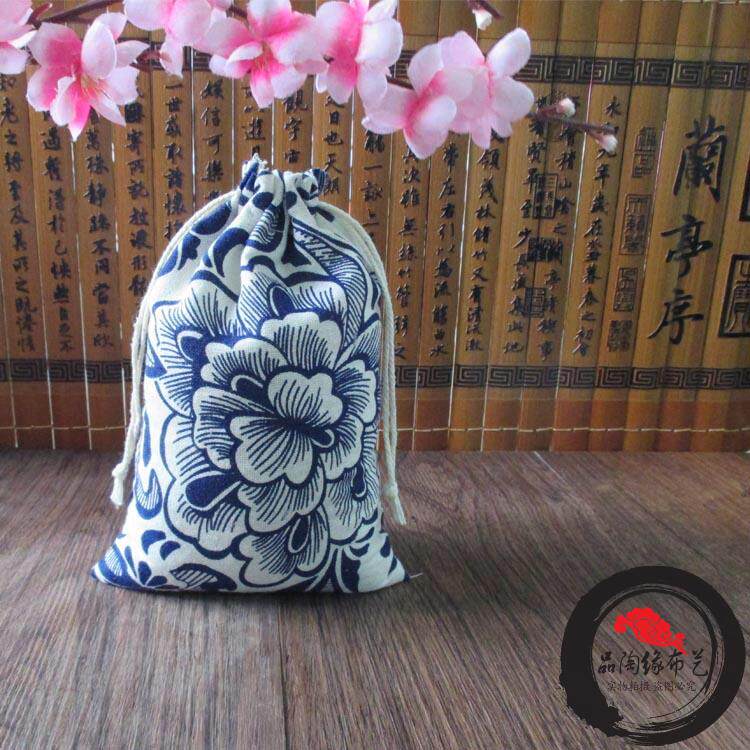 Herbal tea leaves in the rice bag with a label bag, spice decoration porcelain jade packaging blue flower vestige