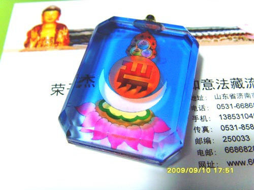 Auspicious Motif Ambargente Crystal Cursive Wheel Pendant (item pendant) Buddhist Supplies