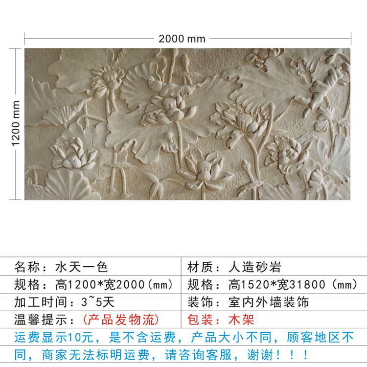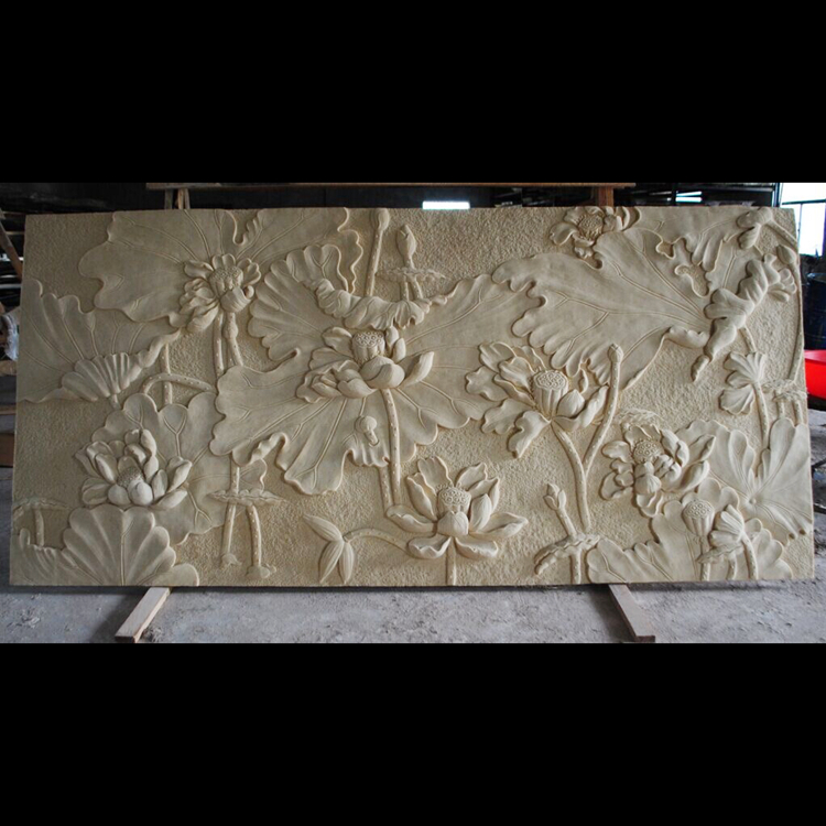 Sandstone relief lotus art mural indoor Villa Community Park outer wall sculpture decoration background wall