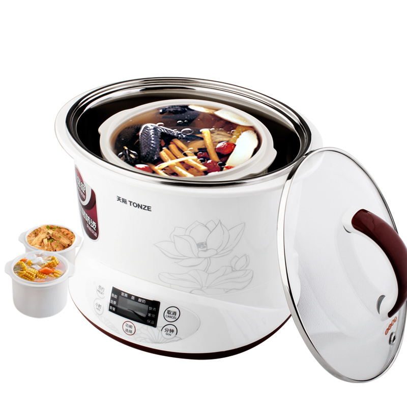 Tonze skyline DGD22-22EG stainless steel water-stop stew white porcelain ceramic cooking porridge saucepan electric saucepan electric saucepan