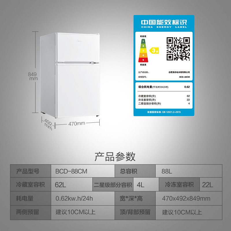 Midea BCD-88CM two-door two-door small refrigerator Dormitory household rental energy-saving official refrigerator