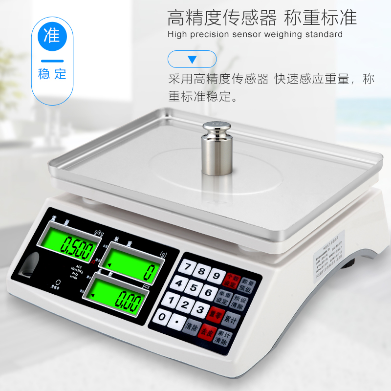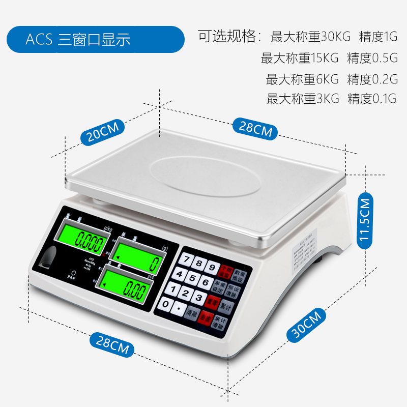 Measuring range 30kg 1g 1g measuring range 15kg 0 5g 5g measuring range 6kg precision 0 2g 2g range 3kg 0 1g 1g Large screen measuring range 30kg Precision