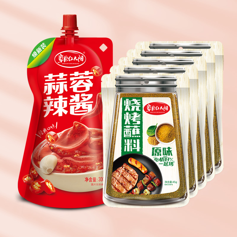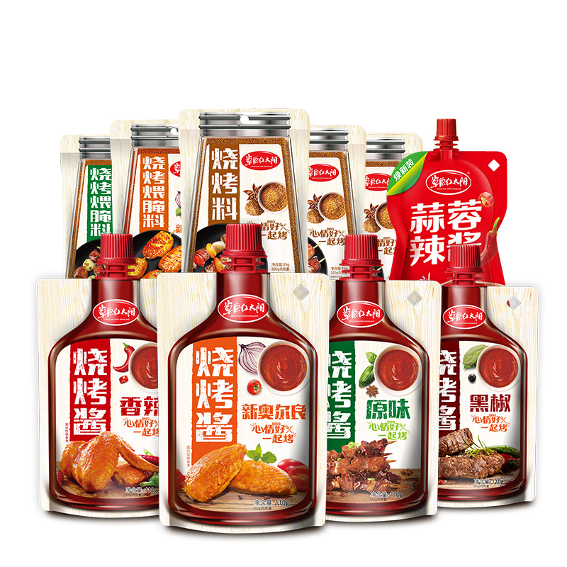 Barbecue sauce full flavor set (4 sets of original spicy Orleans black pepper 1 bag each) Barbecue barbecue set (6 sets of garlic chili 300g*1 barbecue dip 45g*5) Barbecue