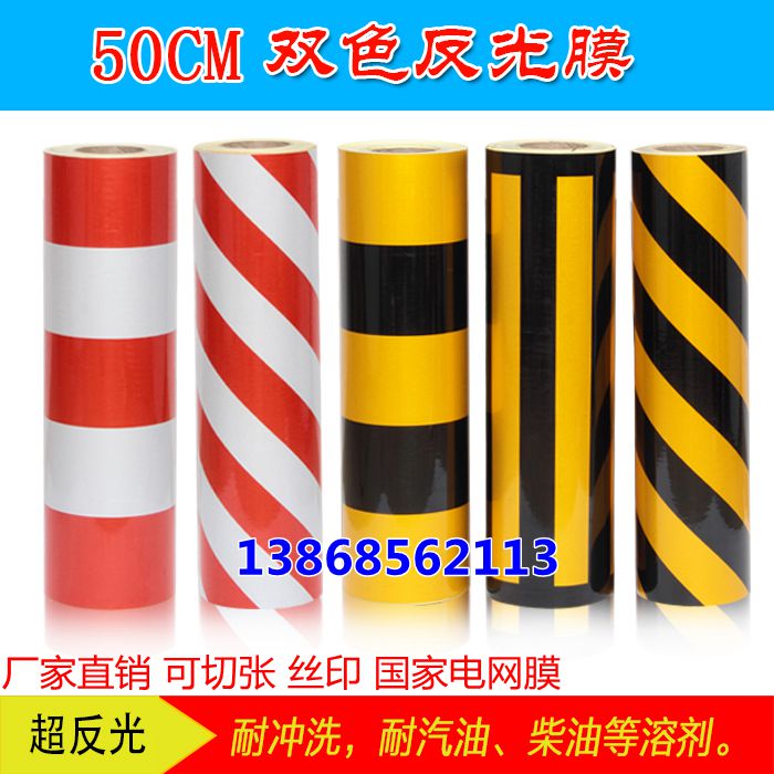 50CM red and white straight pattern 50 meters 50CM yellow and black straight pattern 50 meters 60cm yellow and black straight grain 50 meters 30cm wide two red and one white whole roll 60cm red and white straight grain 50 meters long