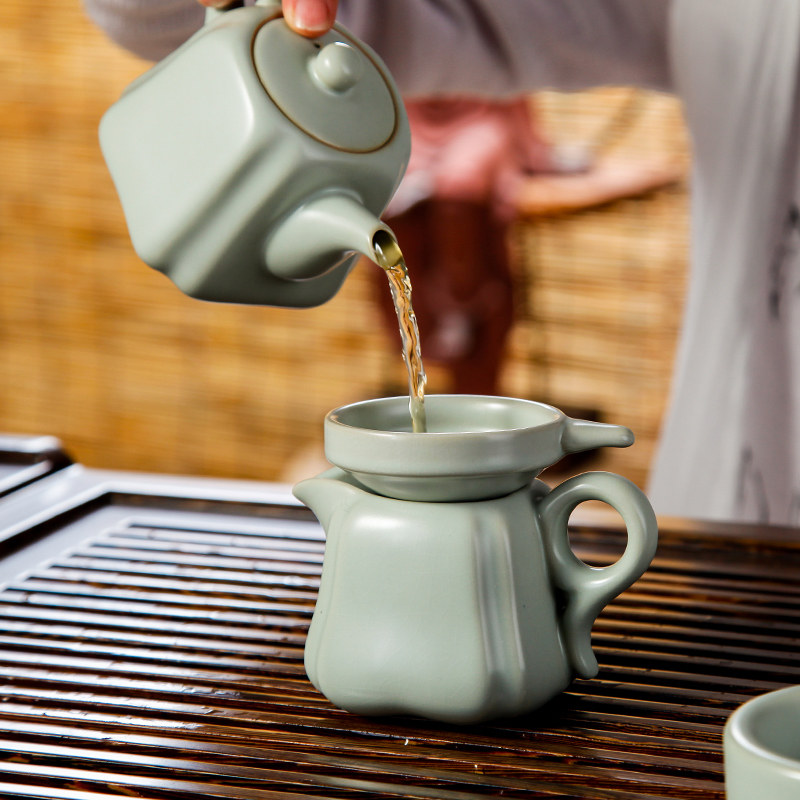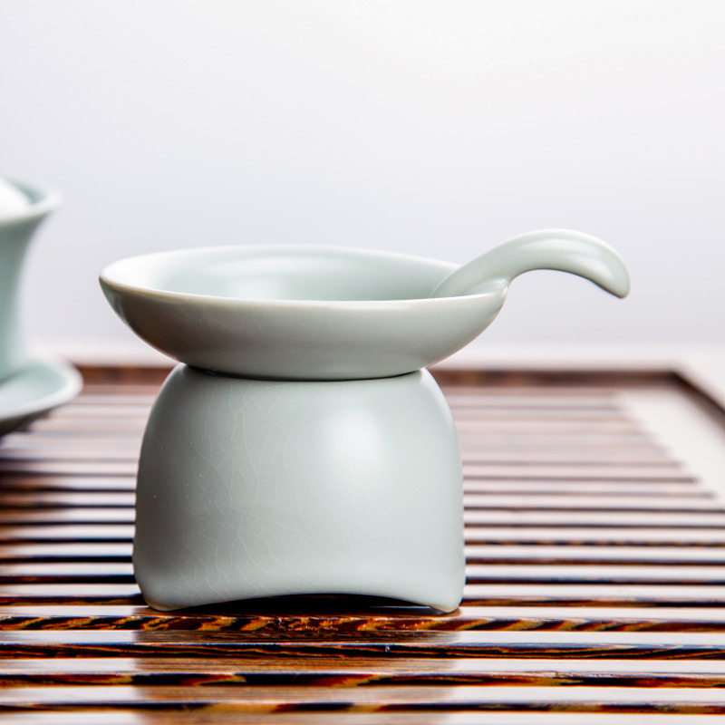 Kung Fu tea set accessories Ru porcelain tea strainer net Ru Dao Ru kiln open funnel filter ceramic tea leak combination tea strainer
