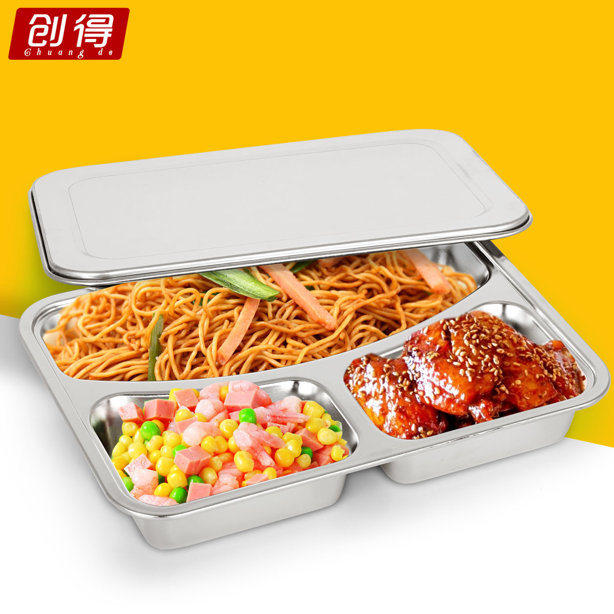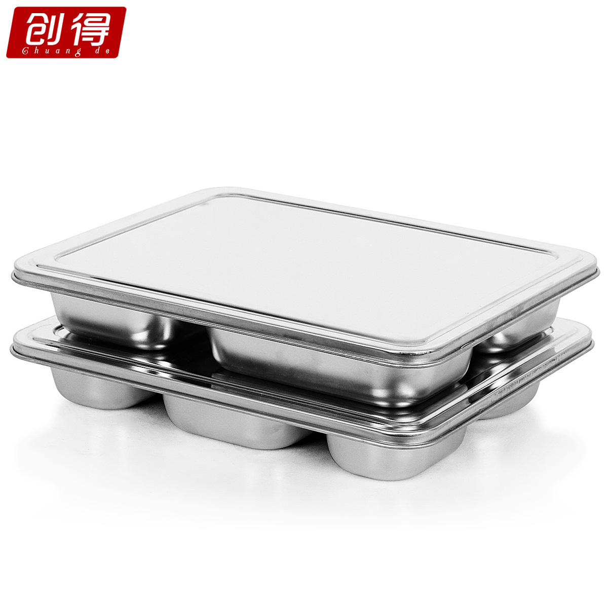 Thickened and deepened stainless steel lunch box divided stainless steel four or five extra fast food boxes fast food trays with lids