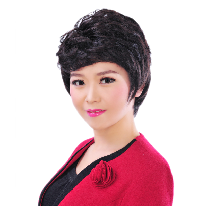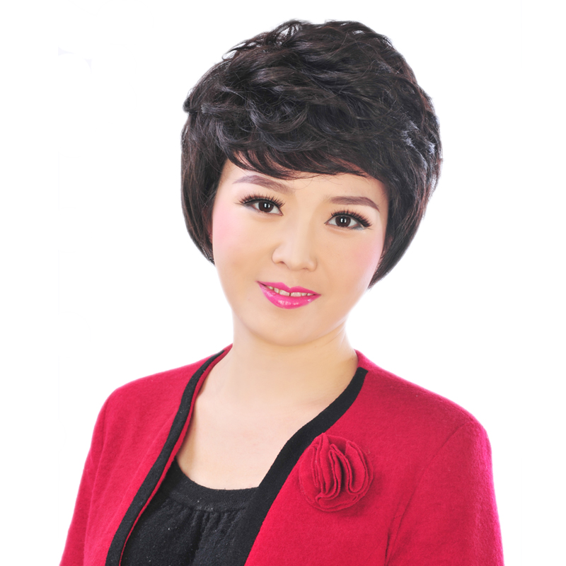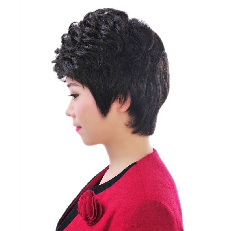 Hand-woven real hair wig Short hair Middle-aged headgear Fashion lady fluffy mom curly hair hairstyle