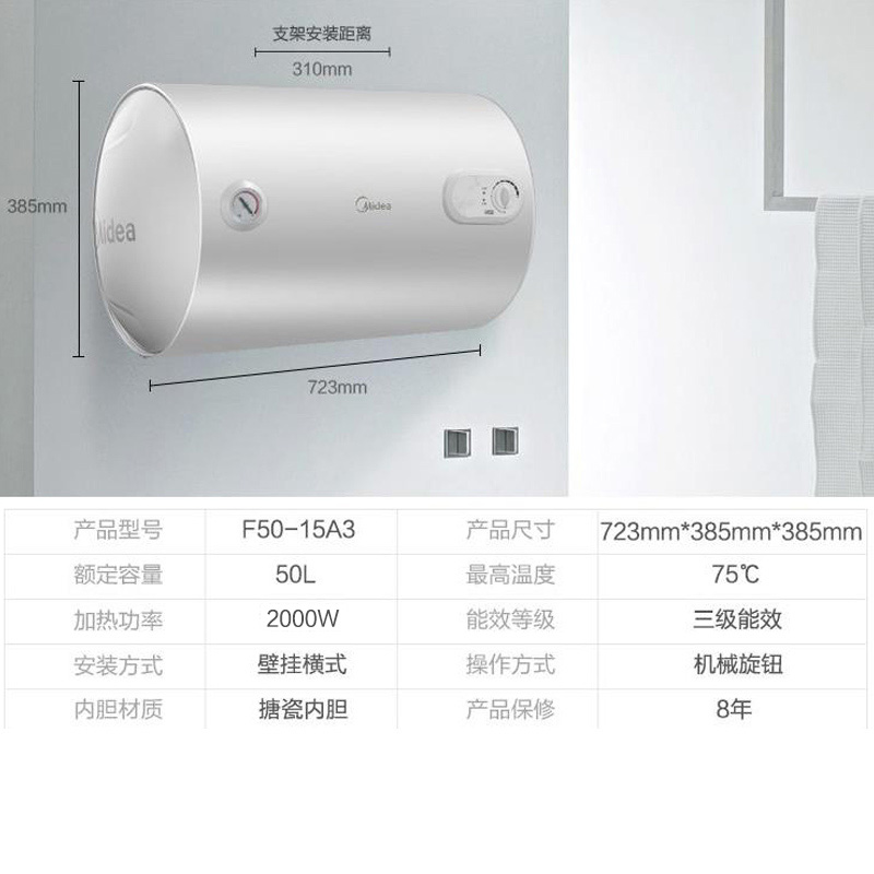 Midea water heater electric water storage household 50 liters powder room small rental rapid hot bath 40L6 official