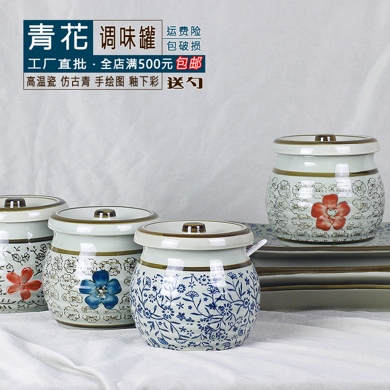 Ceramic flavor tank large capacity 500ml Japanese green flower flavor can sauce salt tank sauce sauce sauce sauce box zakka