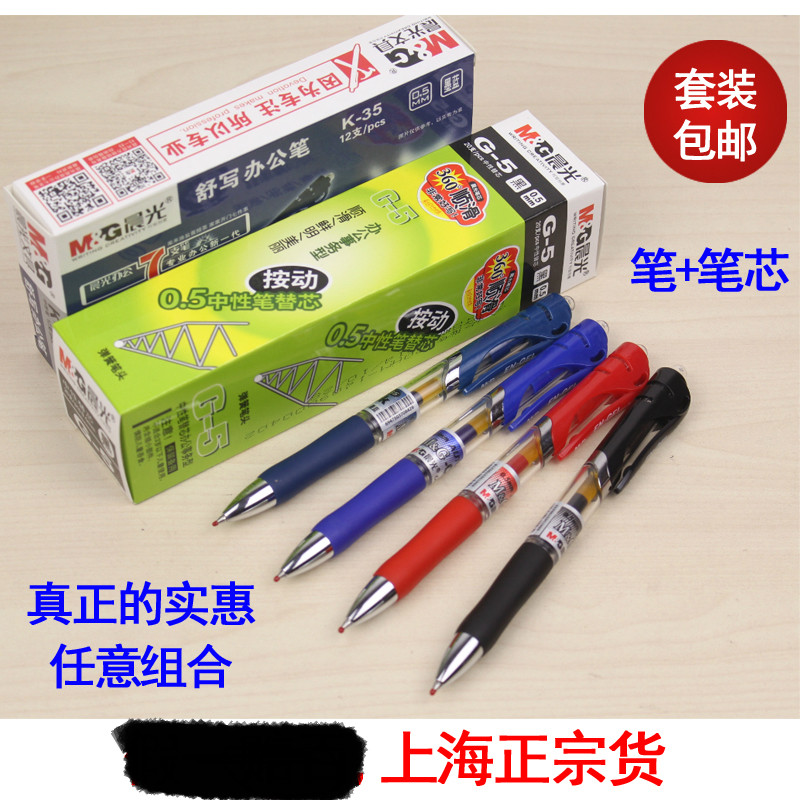 A black pen plus one black core one red pen plus one red core one ink blue pen plus one ink blue core K35 blue pen box of 12 K35 ink blue pen box of 12 K35 red pen box