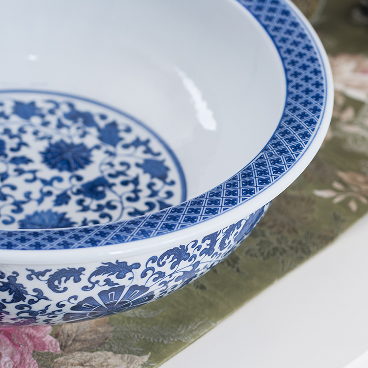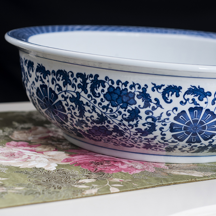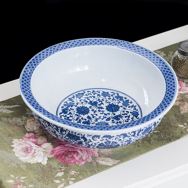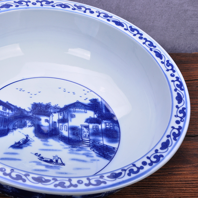 Jingdezhen Qinghua Blossom Ceramics Large Bowl of Sour Vegetable Fish Bowl Water Cooking Fish Basin Soup Bowl Thickening and Noodle Basin Knead Face basin