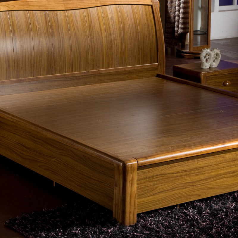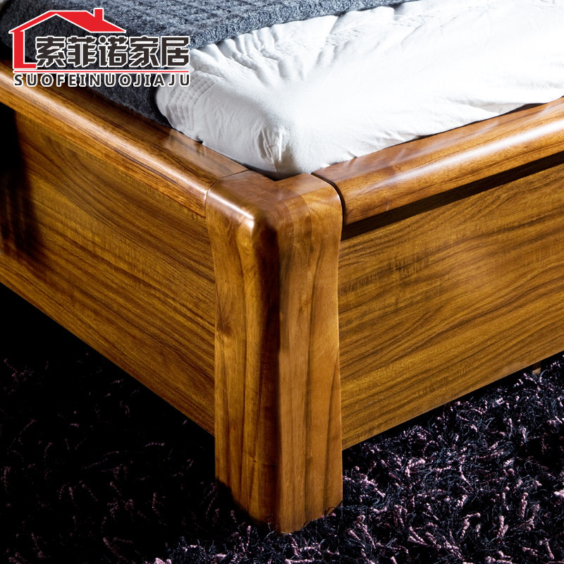 New Chinese style solid wood bed furniture 1 5 1 8 meters wedding bed storage high box bed rubber wood double bed custom