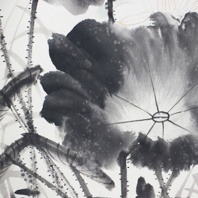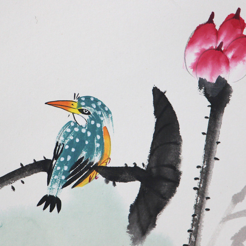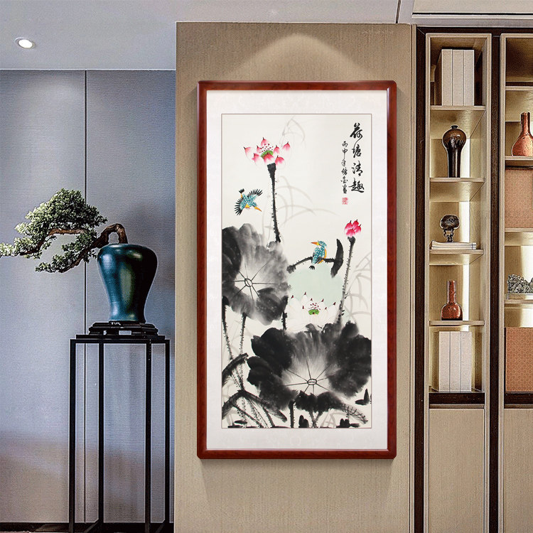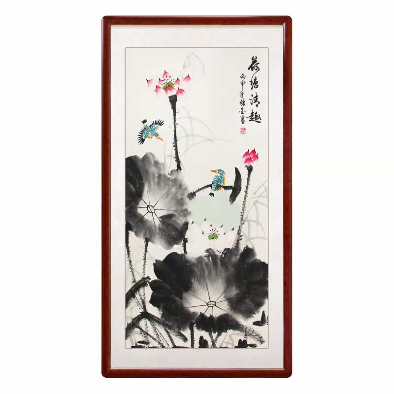 Ho Tong Qing anecdotics paper hand painted with frame flower bird country painting lotus picture living room Xuanguan Book room tea room with frame Rongbao Lin