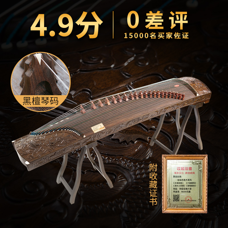 Fairy Vocal Instrumental Authentic Golden Silk Old Nanwood Handcrafted Deep Sculpture Kowloon solid wood Guzheng Professional playing with a collection certificate