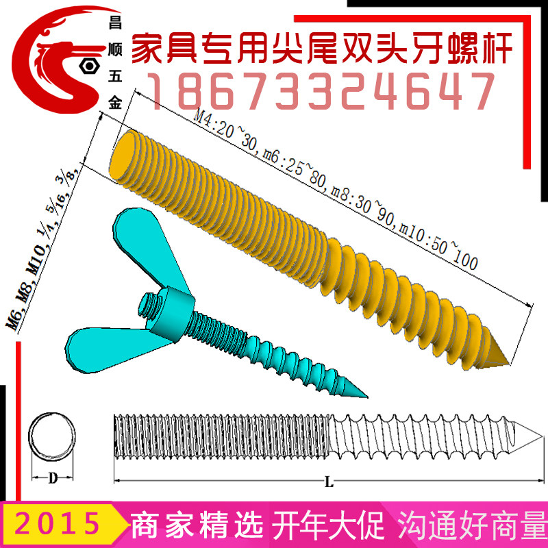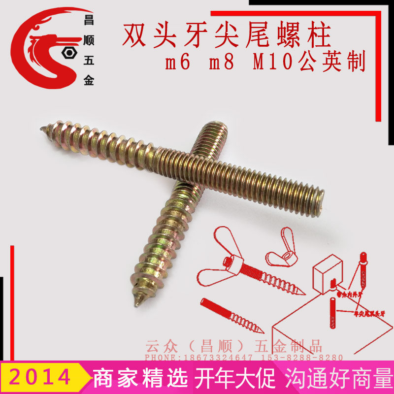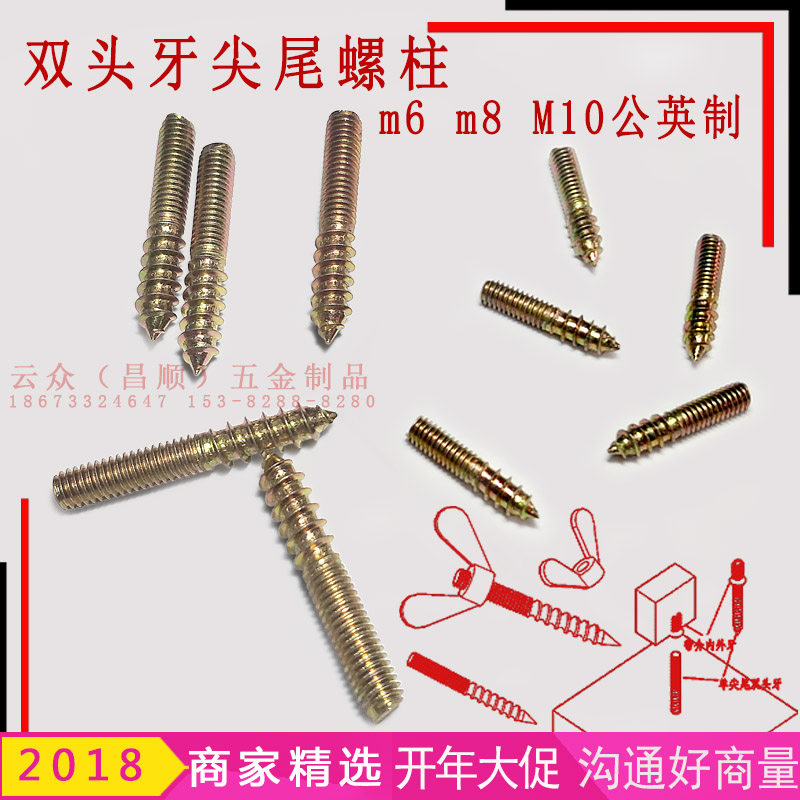 Double head tooth screw M8 single pointed tail double head tooth screw rod furniture sofa stairs special double-head tooth self tapping screw